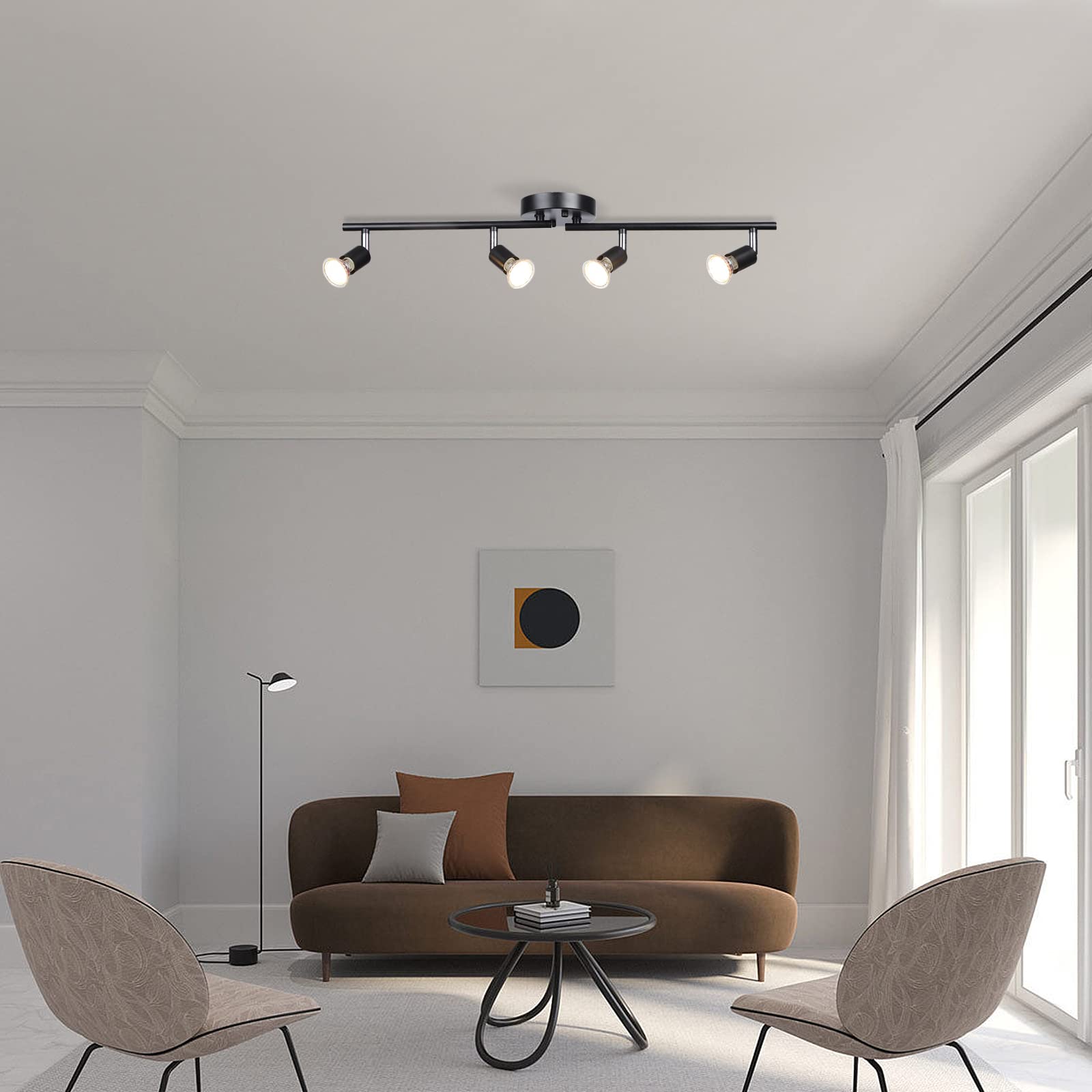 4-Light LED Track Lighting Kit, Adjustable Modern Ceiling Spotlights,Rotatable GU10 Light Head,Swing arm Ceiling Light Fixture for Kitchen Bedroom Living Room(Bulbs is not Included)
