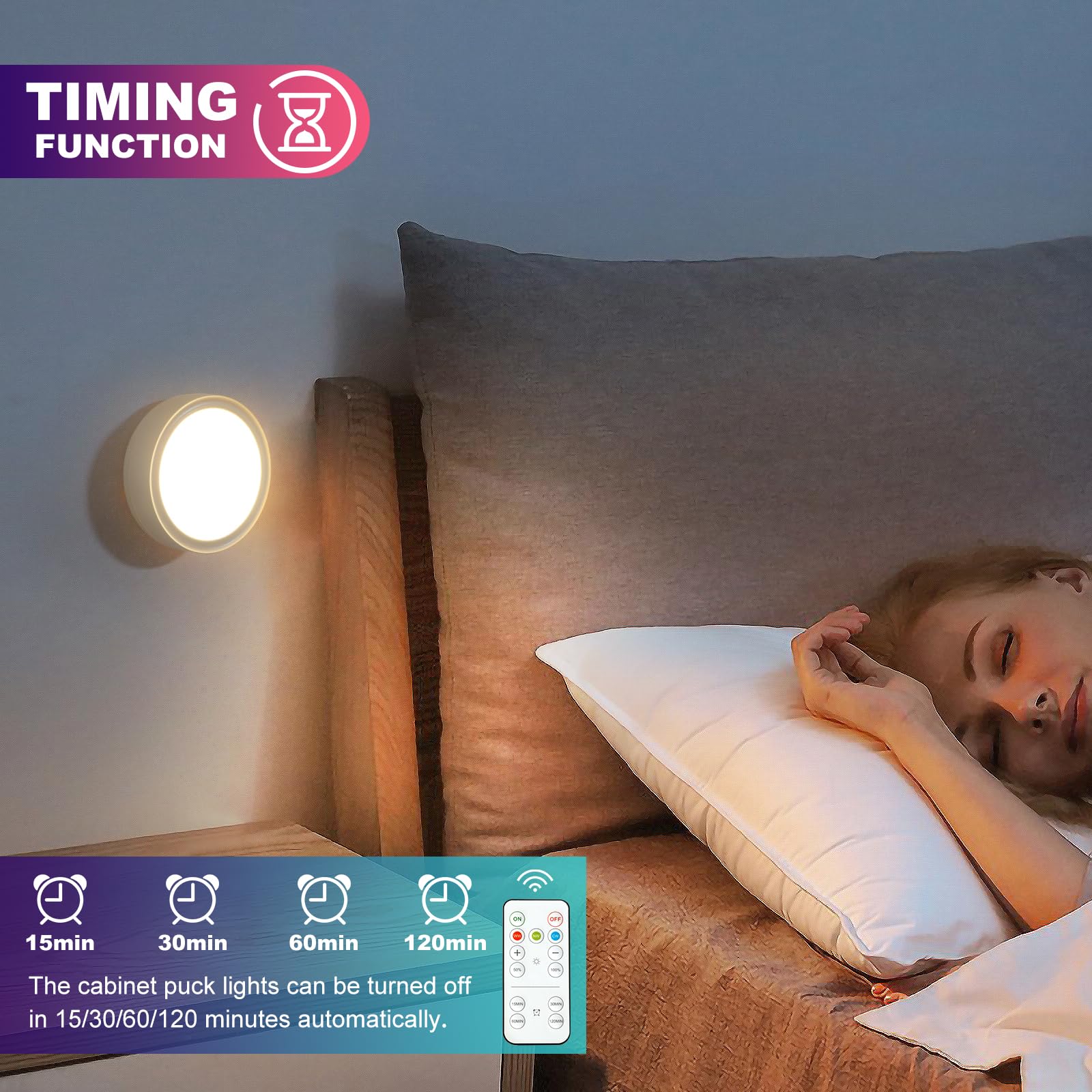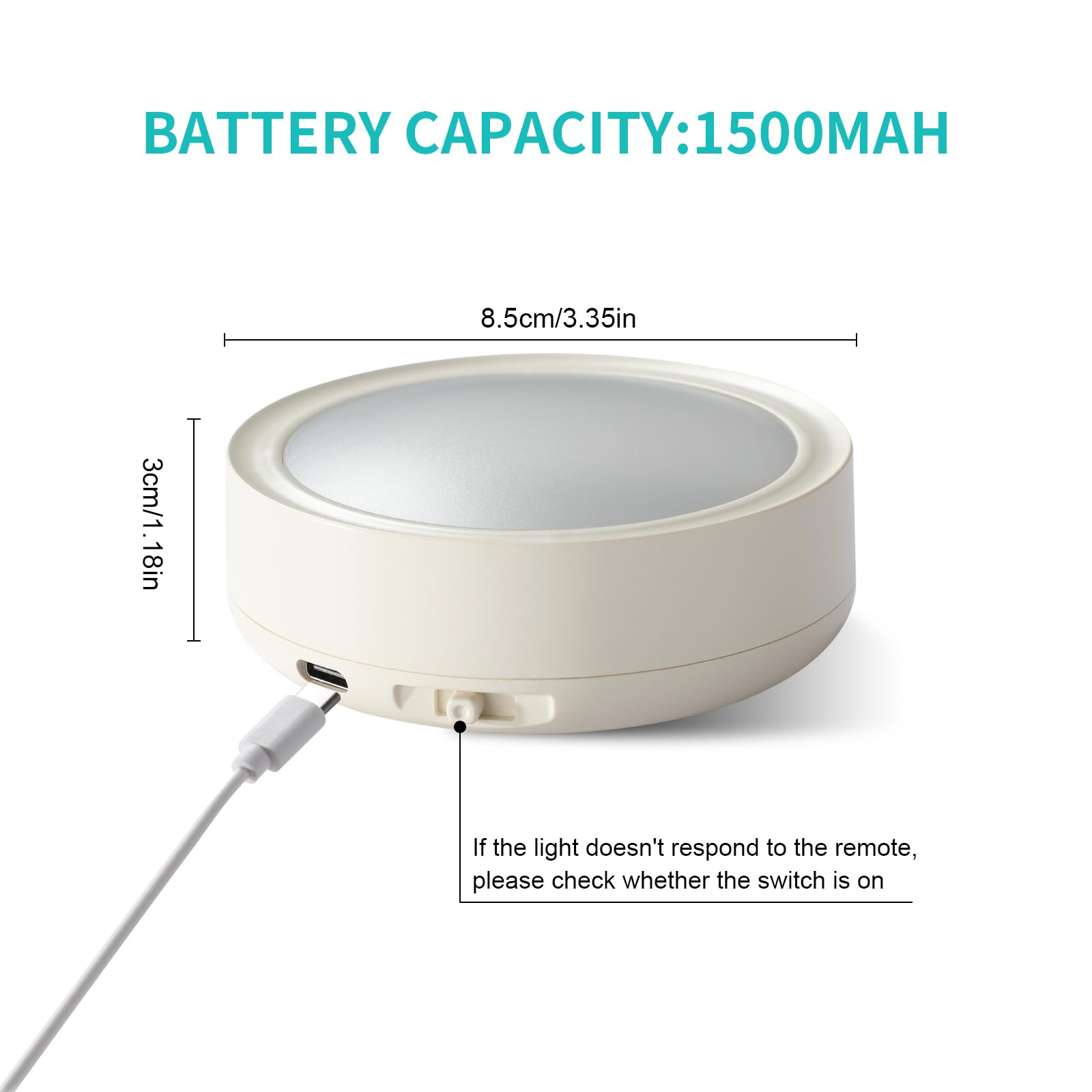 USB Rechargeable Puck Lights with Remote Control, 3 Color Temperatures, Timer & Dimming, Easy Install