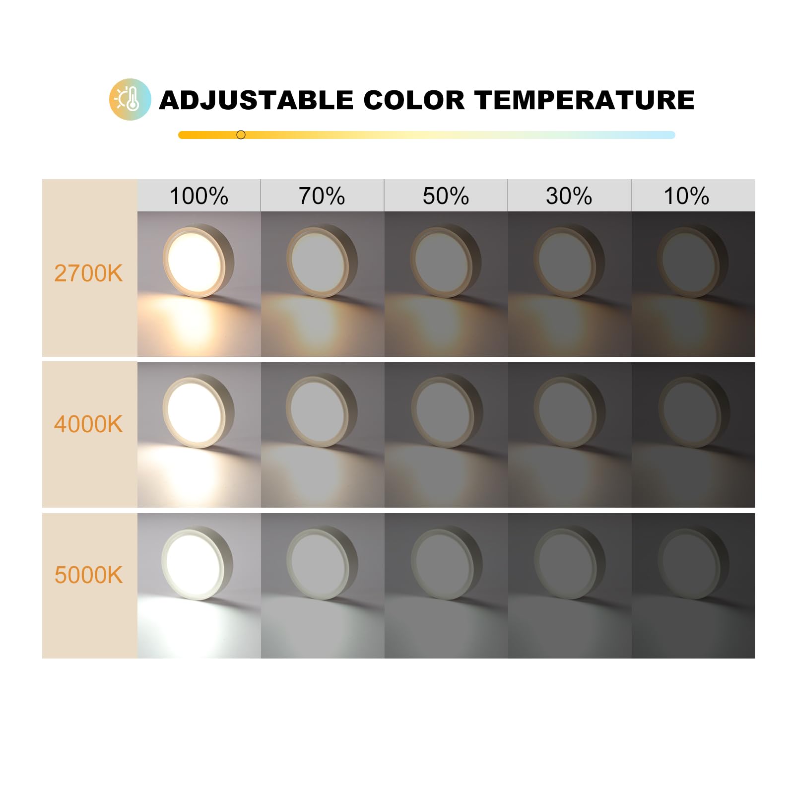 - Three colour temperature: The USB rechargeable puck lights with three colour modes: warm white, neutral white and cold white(2700K-5000K).